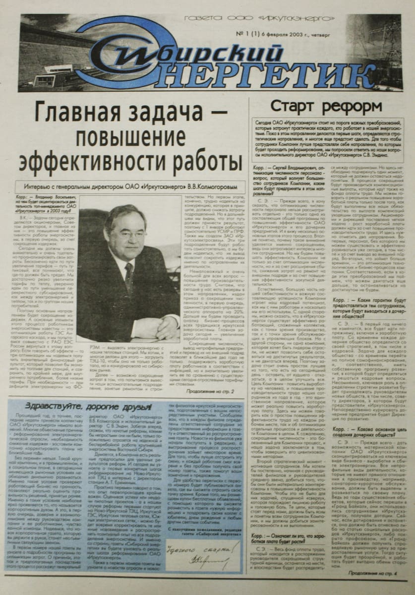 «Возможно, создать газету – дело нехитрое. Так многие думают. Были бы деньги на первый номер – уже газета, – рассказывает Андрей Швайкин, начальник управления по связям с общественностью и внутрикорпоративной политике ОАО «Иркутскэнерго». – Но я помню, с чего всё начиналось: мы долго искали стиль, лицо издания, переживали непростые времена признания даже в собственном коллективе. Трудно быть корпоративной газетой для всех, особенно в среде энергетиков или угольщиков, где точность слова превыше образов. Но нас полюбили. И это дало нам право и возможность выйти за рамки корпоративного издания».