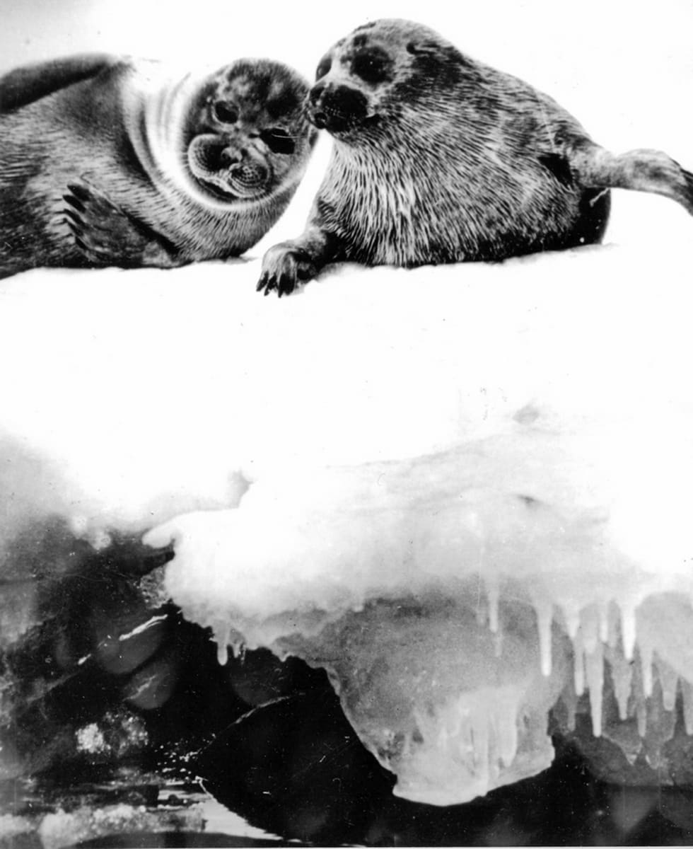 Какое же было счастье, когда мы нашли всё-таки палатку охотников и возле неё во льду лунки – целое лежбище красавиц нерп! Из огромного материала, что я снял тогда, только одно фото смогло удовлетворить меня. На негативе – три нерпы: две рядом, словно кумушки, а третья отвернулась от парочки. В редакции посоветовали откадрировать, убрать ту нерпу, что отвернулась от подруг, хотя я эту работу даже назвал поначалу «Третий лишний». Снимок с двумя кумушками обошёл десятки изданий, стал обложкой многих журналов. Это фото было отмечено разными дипломами, подарками, премиями. На международной выставке фотографии в Гааге за этот снимок я был удостоен бронзовой медали. Оператор Борис Винокур, использовав снятый материал в киножурнале «Восточная Сибирь», а затем и в фильмах о Байкале, также получил очень престижную международную премию за кадры с этими необычными байкальскими тюленями.