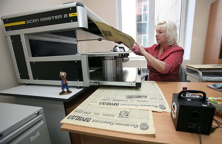 Ещё одно новшество, которое пока не доступно ни одной библиотеке за Уралом. Теперь «Молчановка» владеет целой лабораторией оцифровки и создания микрофильмов. Четыре сканера лаборатории особенные – они работают, не повреждая хрупкую бумагу. Цифровая копия переводится ещё и в микрофильм – базу для «страхового фонда» библиотеки. «Вот в таких коробках хранятся наши микрофильмы, – показывает Мария Семидетко. Коробочка не больше бокса для дискет. – Здесь на плёнке выпуски газеты за два года. Такой микрофильм хранится от 100 до 500 лет».