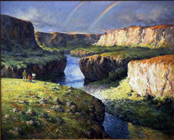 Смотришь его картины и отказываешься верить, что уже нет рядом с нами весёлого, сильного, светлого человека. Подумать только, он ушёл в самом зените своего творческого взлёта, ибо что такое 57 лет для настоящего, большого таланта, кудесника кисти, мастера, о планах и замыслах которого поведали его коллеги и ученики. Пройдёмся ещё раз по залам галереи, где даже беглого взгляда достаточно, чтобы убедиться в справедливости слов, сказанных на открытии персональной выставки: «Мир его искусства неповторим, самобытен и глубоко лиричен». Взять, к примеру, такие картины, как «Где твой дом, человек?», «Облака всё те же», «У вершин», триптих «Дума о Байкале», «Над вечностью», многие другие шедевры, чтобы ощутить нашу сопричастность к мудрости и величию природы, к вечным загадкам человеческого бытия, к тайнам мироздания.