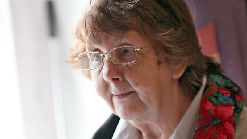 Пол, конечно, тоже не был бетонным. Таким он стал в советское время, которому потребовалось избавиться от паркета. Людмила Валентиновна склоняется над столиком с бумагами, стоящим у окна, показывает чертёж фасада.