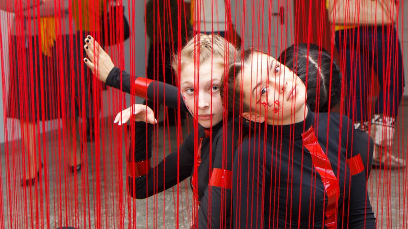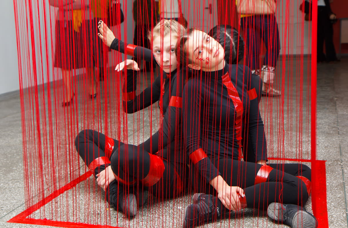 Ауру современного искусства, мимолётного и в то же время концептуального, наверняка прочувствовал каждый из присутствующих. Центром экспозиции стал куб, созданный из тонких красных нитей. Как заметила преподаватель мировой художественной культуры Елена Тощева, красные нити ассоциируются с муками творчества. В духе модного перфоманса в самом сердце куба поселилось настоящее «вдохновение», изображённое девушкамихореографами и выпущенное в итоге на волю художником Татьяной Сахалтуевой.