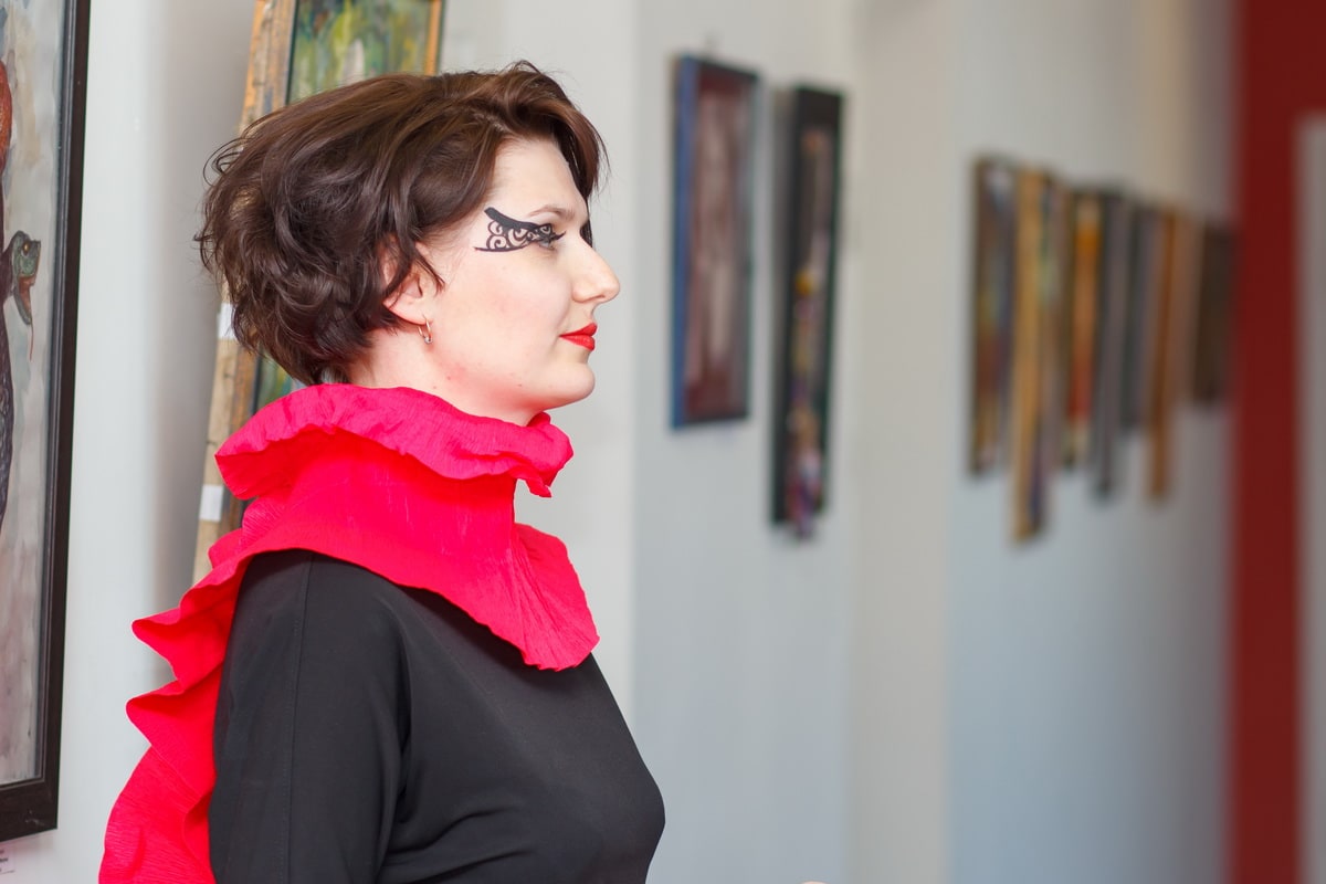 Идеолог выставки Анна Кравченко отметила, что автопортрет – сложный жанр, в который вкладываешь не только своё мастерство, но и часть себя, своё отражение, свои мысли. Презентация выставочного пространства прошла в весьма неординарной форме, она сочетала в себе противоречивые настроения и цвета: яркий, жгучий, ослепительный красный и тяжёлый, хмурый, грубый чёрный.