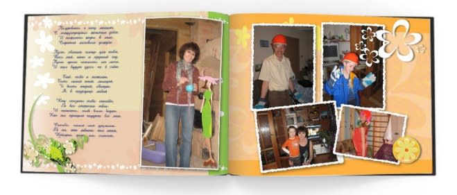 Из фотографий Вы можете создать абсолютно любой подарок. Например, если у кого-нибудь из Вашей семьи скоро день рождения, тогда отберите самые ценные фотографии для этого человека и соберите их на страницах одной книги. Примеры и варианты оформления фотокниги в подарок на день рождения можно посмотреть в специальном разделе «Подарок на день рождения» интеренет сервиса Book4Smile. Наиболее эффектной будет фотокнига в подарок на юбилей, ведь юбилей – это особая дата и подарок должен быть соответствующим. Некоторые стили и примеры оформления такой книги можно посмотреть в специальном разделе «Подарок на юбилей»