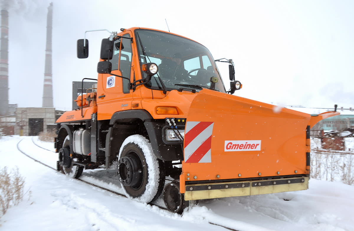 Ярко-оранжевый автомобиль с плужным снегоочистителем, негромко тарахтя дизельным мотором, неторопливо выезжает из ворот ангара и катится по территории НЗ ТЭЦ. Подобные машины с трёхлучевой звездой на капоте – Mercedes-Benz Unimog U400 – в Иркутской области встретишь нечасто, но даже с учётом этого обстоятельства ничего необычного в такой картине нет. Кроме одного: едет она не по асфальту, а по рельсам. И называется она локомобилем.