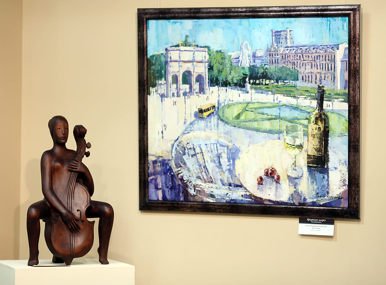 «Здесь представлены современные французские виды. Например, Регина Присяжникова в путешествии написала «Париж». Вот Триумфальная арка, а на картине рядом наша улица Карла Маркса выглядит не хуже столицы Франции. Вот здесь изображён район, где я родился. Он не похож на Париж, извините. Сейчас здесь находится 130 квартал. Замечательный художник Сергей Жилин написал «Парижанку». И ещё представлен целый ряд картин, выражающих французские культурные мотивы», – говорит Виктор Бронштейн. Одной из жемчужин выставки стала работа, принадлежащая кисти Леона Кортеса и датированная 1910 годом.