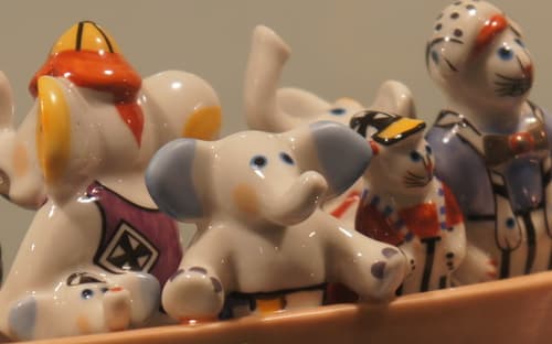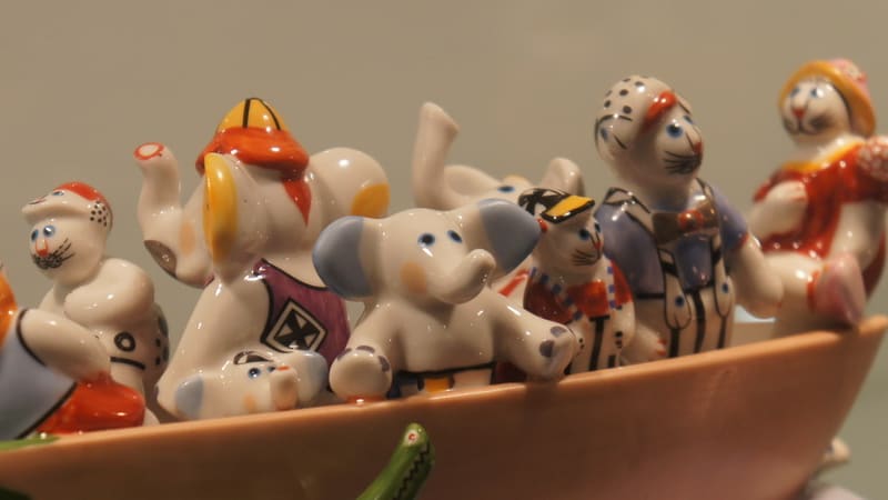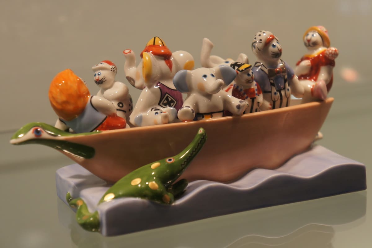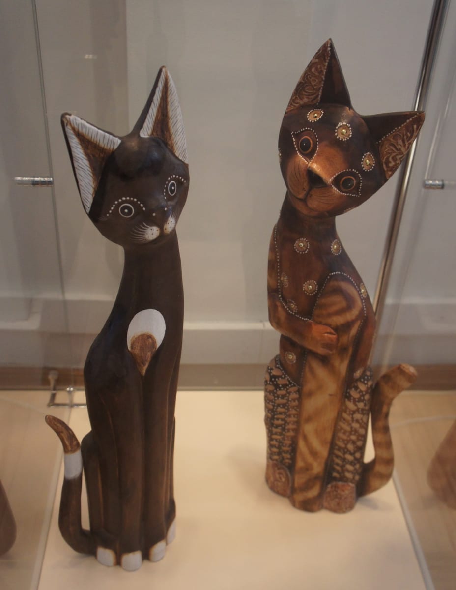С удивлением и восхищением ребятишки, в основном дошколята (а поток их поистине нескончаем), знакомятся с экзотическим миром братьев наших меньших, миром домашних любимцев. И это понятно: не каждый день увидишь такое количество прекрасных созданий, воплощённых в различных художественных формах и манерах. И материалов, из которых выполнены эти великолепные художественные изделия. Здесь можно встретить кошек, изготовленных из текстиля, валяной шерсти – войлока, вышивки. Большое количество фигурок сувенирных, интересных ещё и тем, что привезены они из разных стран. Все изделия не похожи друг на друга: есть кошки весёлые, спящие, есть загадочные, как, например, несколько кошек из Египта. Глаз не оторвёшь от мурок, сотворённых в Мексике, – ярких, буйно раскрашенных. А вот кошечка с острова Бали, выточенная из рога буйвола. Привлекают внимание экспонаты, сделанные из металла, фарфора, как, например, изделия немецкой фирмы «Вилли Рой и Бох». Их фарфоровые кошки играют в гольф, плывут на лодке и т.д.