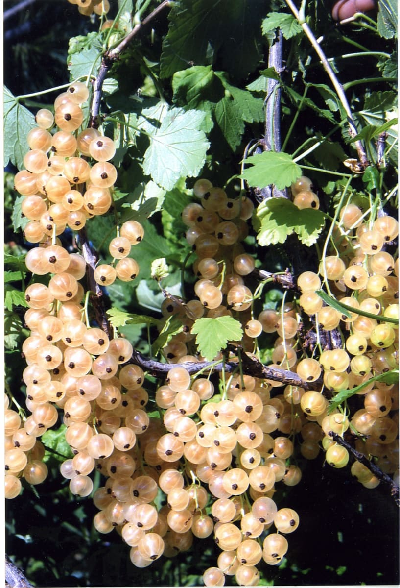 Оказывается, белая смородина – это листопадный кустарник семейства крыжовниковых, очень схожий с красной смородиной и обладающий мощной корневой системой. Отсюда его относительно высокая приспособляемость и нетребовательность к уходу. Кусты в основном высотой 1–1,5 м, имеют полу– и слабораскидистые формы, а прочные побеги хорошо удерживают весомые гроздья ягод. Они не такие крупные, как у чёрной смородины, – 0,6–1,6 г, имеют шаровидную форму, бело-желтоватую окраску, иногда полупрозрачные. Вкус преобладает сладко-кислый освежающий, но есть сорта с более сладким десертным вкусом. Белая смородина значительно урожайнее чёрной и более устойчива к разным напастям – мучнистой росе, антракнозу, смородиновому клещу и другим. А вот галловая тля, хотя и незначительно, иногда присутствует на листьях, но не так агрессивно, как на красной смородине.