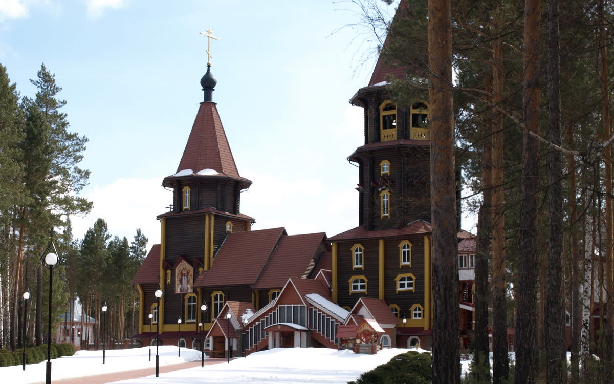 На территории храма располагается ещё одно здание – Саянский дом милосердия. Здесь находятся онкологические больные, которые проходят реабилитацию после химиотерапии. Само здание соединено с храмом тёплой галереей, что облегчает перемещение внутри комплекса. Когда-нибудь здесь расцветёт зимний сад. Но дом милосердия и церковь связывают и более крепкие, духовные узы. В общем, это и неудивительно, ведь церковь в России исторически опекала и окормляла разные социальные учреждения.