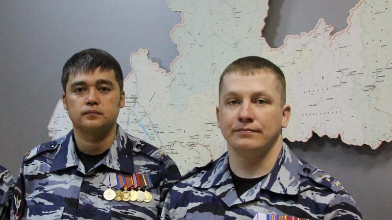 СОБРа капитан Евгений Ходеев и боец-водитель прапорщик Дмитрий Андрюсишин, обезвредившие вооружённого преступника и освободившие малолетнего заложника.