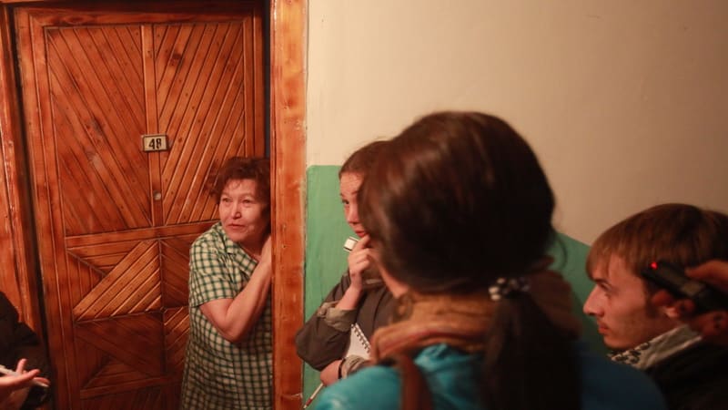 Проплыв мимо слегка покорёженных почтовых ящиков, группа отправилась на поиски жильцов. Здесь их настигла импровизация. Готовая к общению старшая по подъезду оказалась на работе, но хотела похвалить УК по громкой телефонной связи. Журналисты настояли на «живых» жильцах и пошли стучать в двери. Третья попытка оказалась удачной. В проёме двери показался мужчина в халате.  «Давайте не будем фотографироваться!» – жилец проскользнул обратно за железную дверь и уже оттуда заверил, что в его подъезде «всё нормально», замечаний, как и предложений, к управляющей компании нет. «Бывает, только свет отключают, особенно ночью, – разговорился мужчина. – У меня просто часы электрические, просыпаюсь – а они по нулям». «Ну, это уже не совсем к управляющей компании…»  – ответили гости и двинулись дальше.
