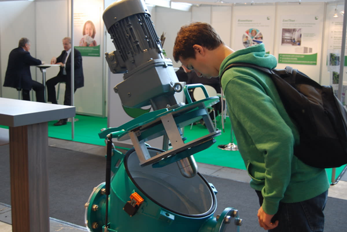 Не случайно на ярмарке были представлены уже усовершенствованные технологии получения топлива из биомассы. «Каждый человек независимо от возраста, физической формы или размера производит органические отходы – в среднем 250 кг в год», – говорится в брошюре одного из участников выставки. Сточные воды, «мягкая органическая масса», навоз, компост, остатки еды, испорченные овощи и фрукты, отходы ресторанов и производителей продуктов питания – всё это может быть источником энергии. Например, оборудование для заводов по переработке биоотходов, которое представляла компания «Страбаг», использует две технологии переработки – влажной анаэробной ферментации и сухого анаэробного сбраживания. Коллеги из итальянской компании с двадцатилетним опытом на рынке биоэтанола представляли реактор, который увеличивает выработку метана и снижает время переработки. Оборудование измельчает и превращает в гомогенную массу биоотходы любого типа, ускоряя ферментацию. Патентованная технология использует контролируемую кавитацию (образование в жидкости полостей – кавитационных пузырьков, или каверн – физический эффект.