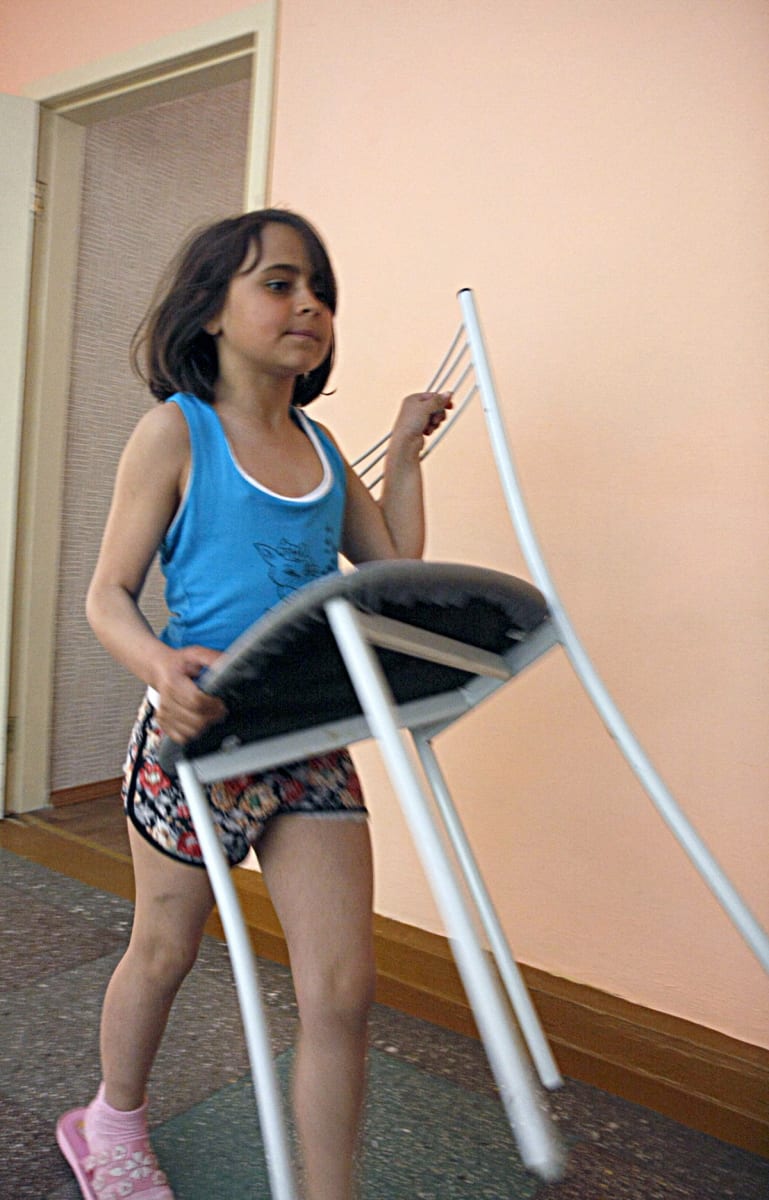 Все поместились в одном корпусе. Здесь «переселенцев» распределили по возрастам. На первом этаже – старшие дети, на втором – младшие. В комнатах живут по четверо, к каждой кровати прикреплена бумажка с именем и фамилией ребёнка – чтобы не путались. Учащиеся, которым в этом году предстоит сдать ЕГЭ и ГИА, остались в посёлках, на экзамены их будут доставлять в райцентр, а у тех, кто временно переехал в «Галактику», летние каникулы начались раньше. Упущенные учебные часы им предстоит наверстать в следующем учебном году.