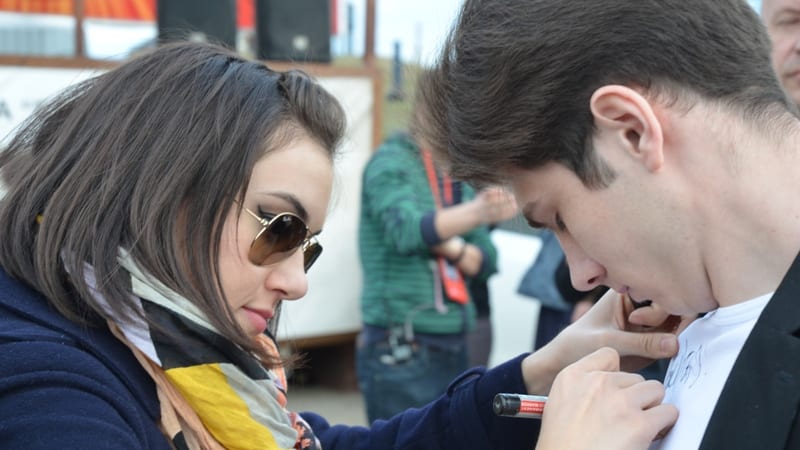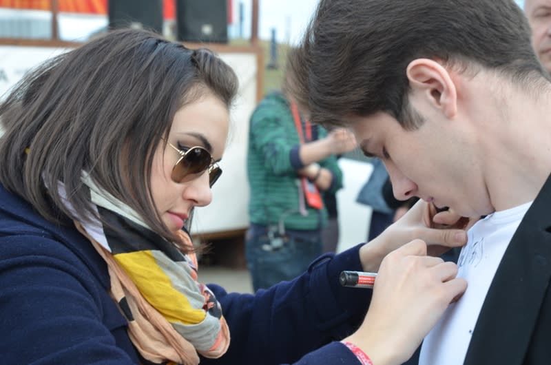 Саша держалась демократично, была мила, обаятельна, улыбчива и общительна. Около десяти человек подставили под звёздную роспись свои тела и майки. Так же ей пришлось расписаться в двух паспортах и на одной сторублёвой купюре. Автограф-сессия продолжалась около получаса, после чего девушка с бурным прошлым попрощалась и укатила на чёрной машине представительского класса, сославшись на подхваченную в Хабаровске простуду.