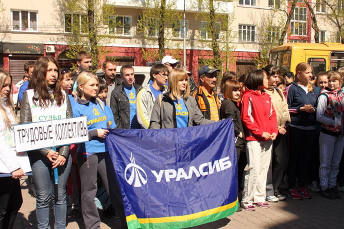Команда Иркутского филиала банка УРАЛСИБ приняла участие в 77-й легкоатлетической эстафете на призы газет «Восточно-Сибирская правда» и «Восточно-Сибирский путь». Третий год подряд сотрудники банка успешно выступают в забеге, посвящённом годовщине Великой Победы. Перед торжественным подведением итогов эстафеты управляющий филиалом ОАО «УРАЛСИБ» в Иркутске Михаил Рудзис вручил подарки участникам Великой Отечественной войны и ветеранам спорта.