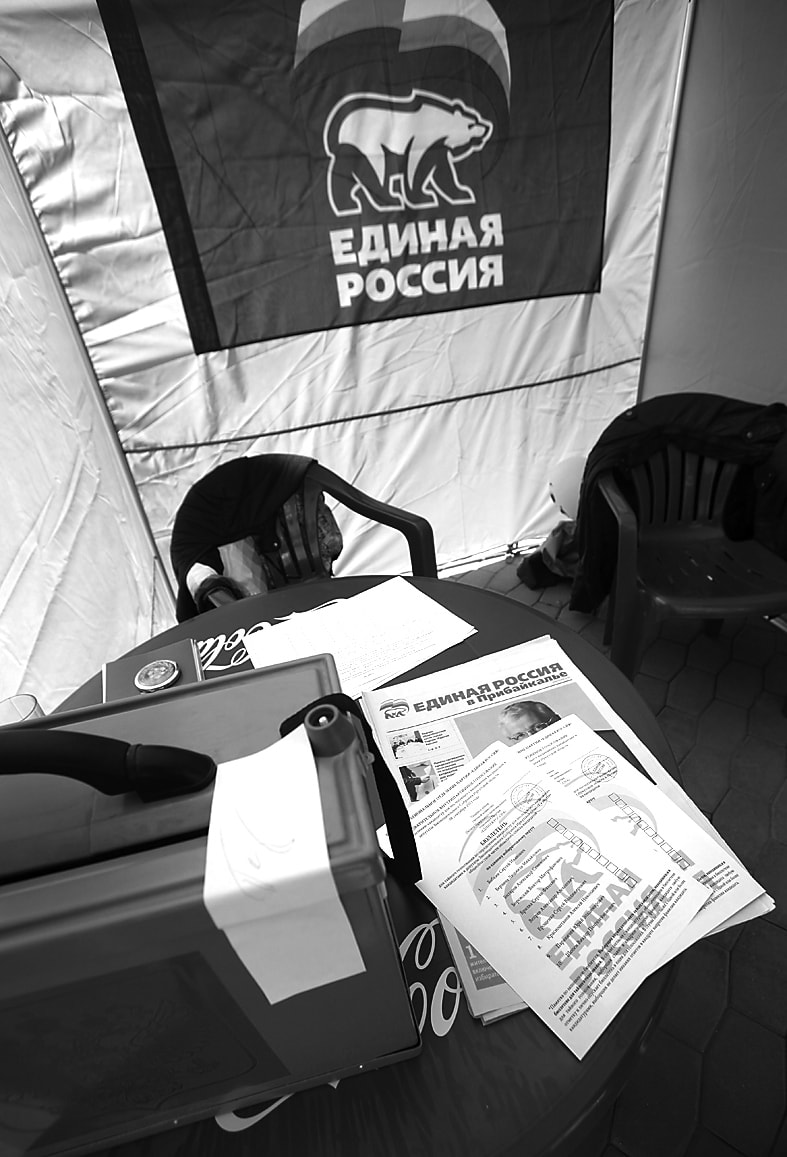Рейд «Конкурента» по палаткам «ЕР» в Иркутске начинается с площади у Торгового комплекса. Хочется проверить «безбоязненность и открытость партии». Мы с другом были в числе 83 тысяч голосовавших на праймериз «ЕР» в Иркутской области в этот день (официальные цифры партии власти). По области было открыто 450 точек голосования, но в Иркутске искать голубого медведя пришлось самим – до последнего момента списка мест для голосования в областном центре не было (прямо на точках в субботу, правда, раздавали газеты с полным перечнем).