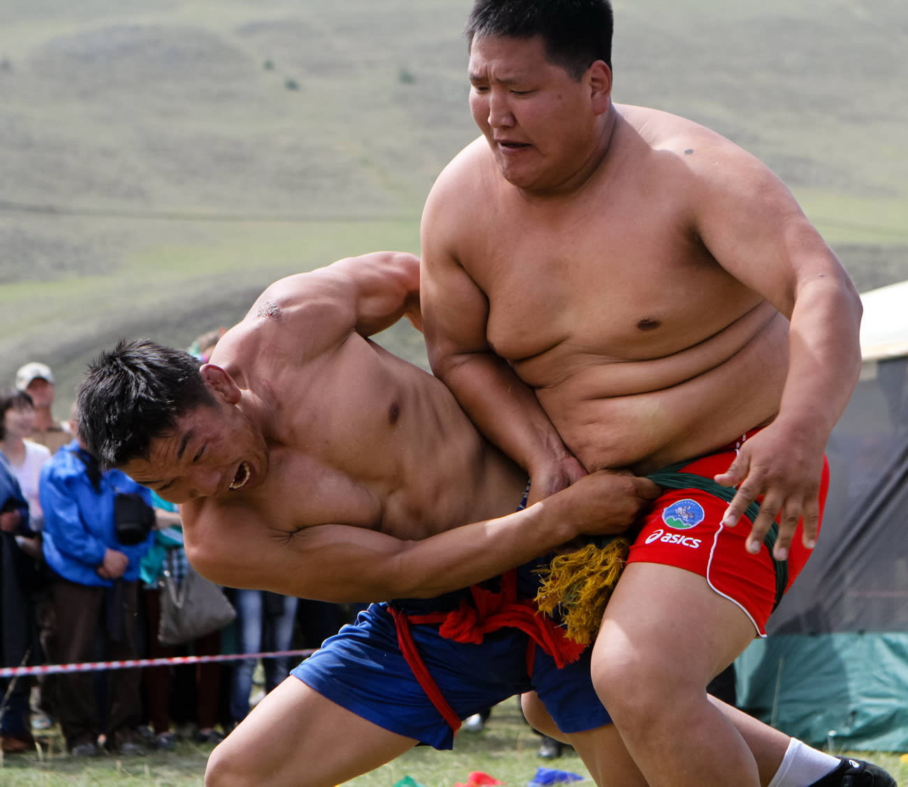 В целом же, говорят участники соревнований, предсказать результат практически невозможно – всё зависит от того, к кому благоволят духи. «Бурятская борьба очень непредсказуема, любой может победить – и маленький, и большой, – говорит баатор Цыремпил Моисеев. – Наверное, хозяева горы Ёрд помогают мне». Интерес зрителей подогревают виртуозные комментаторы, наблюдающие за схваткой. «82 килограмма против 108! Я ставлю на 82», – уверен ведущий. Но побеждает 108-килограммовый боец.