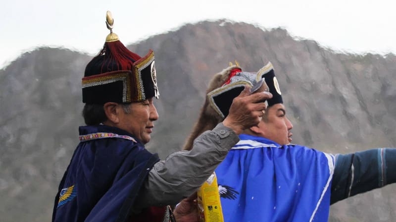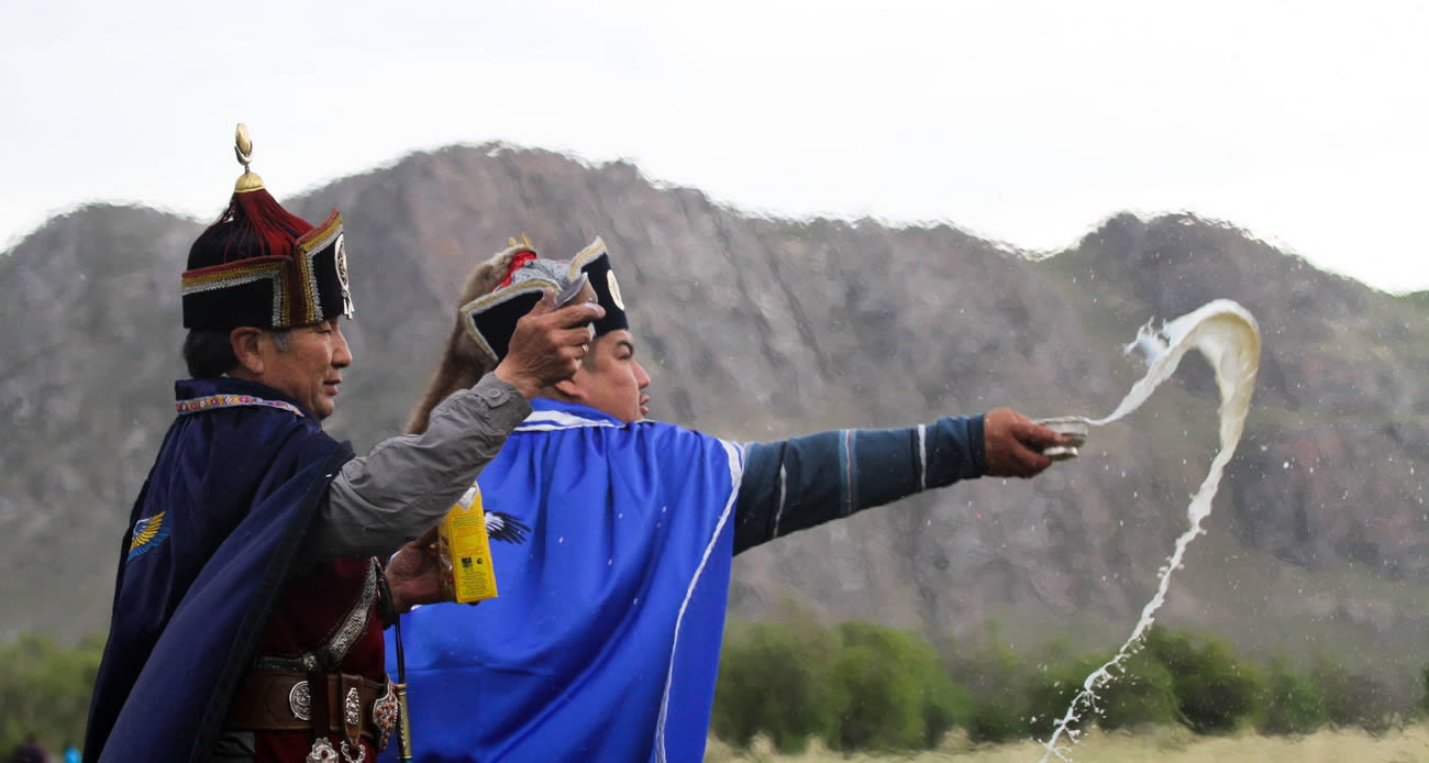 Несколько десятков шаманов располагаются в линию у подножья горы и с раннего утра ведут приготовления. Их помощники принимают от гостей записки и терпеливо объясняют правила молебна за родственников: «На бумаге пишете список, перечисляете всех членов семьи. Начинайте с мужчин: имя, год рождения, к какому роду и к какому животному принадлежит. Всё указывайте точно, шаман же не может всех знать».