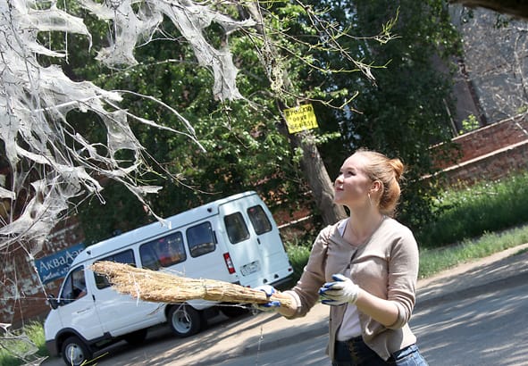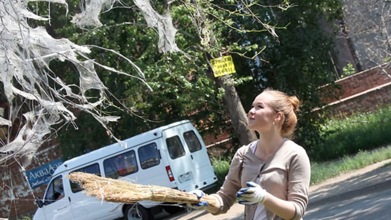 Иркутск с начала тёплых дней утопает в паутине. Горностаевая моль опутала практически все яблони областного центра. Захватывать деревья насекомые начали в Ленинском округе, а сейчас в городе не найдётся микрорайона, который бы не пострадал от мелких чёрных гусениц. Нити паутины свешиваются возле подъездов, над парковочными площадками и тротуарами. На декорации классического фильма ужасов теперь похож бульвар Гагарина. Верхняя набережная раньше была излюбленным местом отдыха иркутян, сейчас же здесь редко встречаются молодые мамы с колясками: гулять под паутиной не опасно, но неприятно.