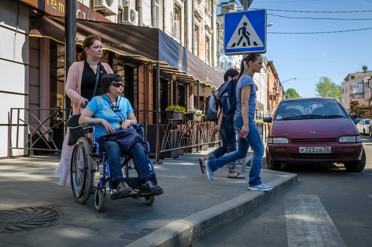 В соседнем Улан-Удэ общественница Эржена Будаева (скончалась в этом году) настойчиво отстаивала права людей с ограниченными возможностями. Она решала практически все проблемы с безбарьерной средой в своём городе, боролась за инклюзивное образование для школьников-инвалидов. В результате активной деятельности женщина добилась того, что ни один новый объект не принимали, пока его не утвердил инвалид-колясочник. И в Иркутске застройщики не имеют права сдавать новостройки без пандусов. Проблема в том, что угол наклона этих пандусов зачастую неудобен для колясочника. Точно так же, как и пандусы в подземных переходах. Например, пандус в переходе на Волжской – это не подспорье, а дополнительное крутое препятствие. «Пандусы – от слова «падать», – обронила во время поездки моя проводница, и, похоже, она была права.