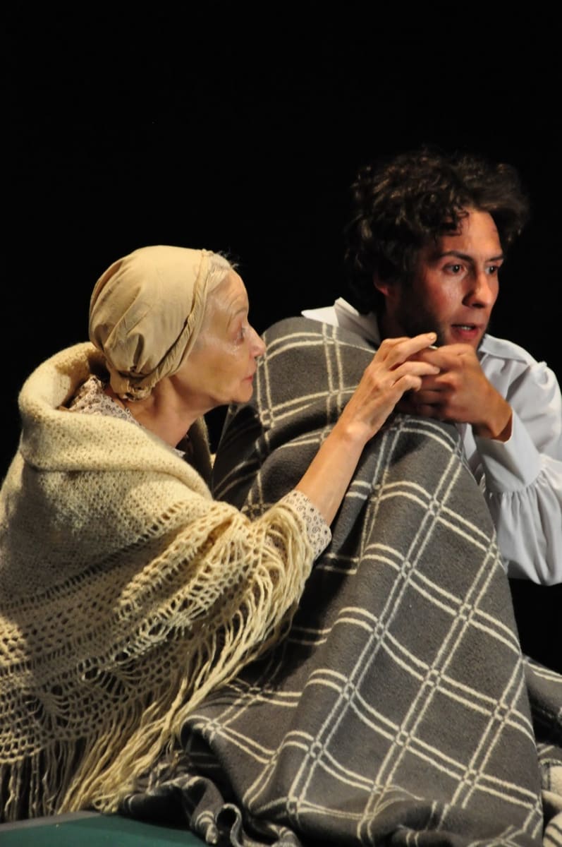 Вышла на сцену Людмила Попкова – я сразу начала плакать. В ней, Арине Родионовне, была такая исступлённость, такая страстность, такое желание обнять, защитить, уберечь, помочь. Это не только профессиональная, а даже потрясающая гражданская работа: мы своих мальчиков не всегда бережём, и не на всех находится своя Арина Родионовна. Для меня это тоже метафорический образ. Мне очень понравилась Лена Константинова, в роли Загряжской она предстала человеком чутким, восторженно воспринимающим произведения Пушкина и знающим их наизусть, жаждущим, чтобы всё срослось между поэтом и её родственницей. В дуэте с Мариной Егоровой, играющей мать Натальи Гончаровой, они смотрятся просто замечательно.