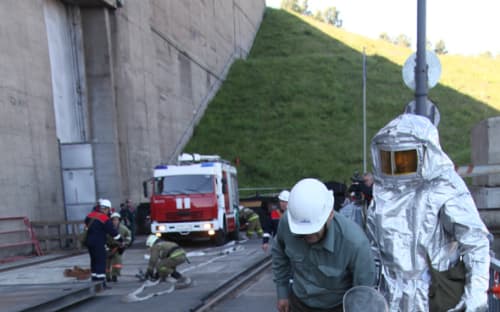 «Здравия желаю, товарищ председатель комиссии!» – прогремело на площадке в нижнем бьефе Иркутской ГЭС. Десять внештатных аварийно-спасательных формирований построены, 50 человек в полной экипировке согласно назначению своего звена – с противогазами, сумками с медикаментами, огнетушителями и средствами радиосвязи – готовы приступить к ликвидации аварийной ситуации на гидроэлектростанции. «Безусловно, у нас сейчас условная авария», – подчёркивает журналистам директор Иркутской ГЭС Сергей Усов. Но лёгкое волнение всё равно чувствуется: голоса у командиров, докладывающих о готовности звеньев, дрожат.