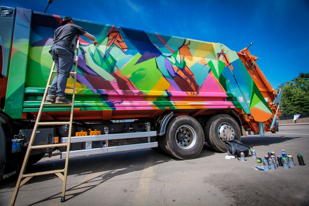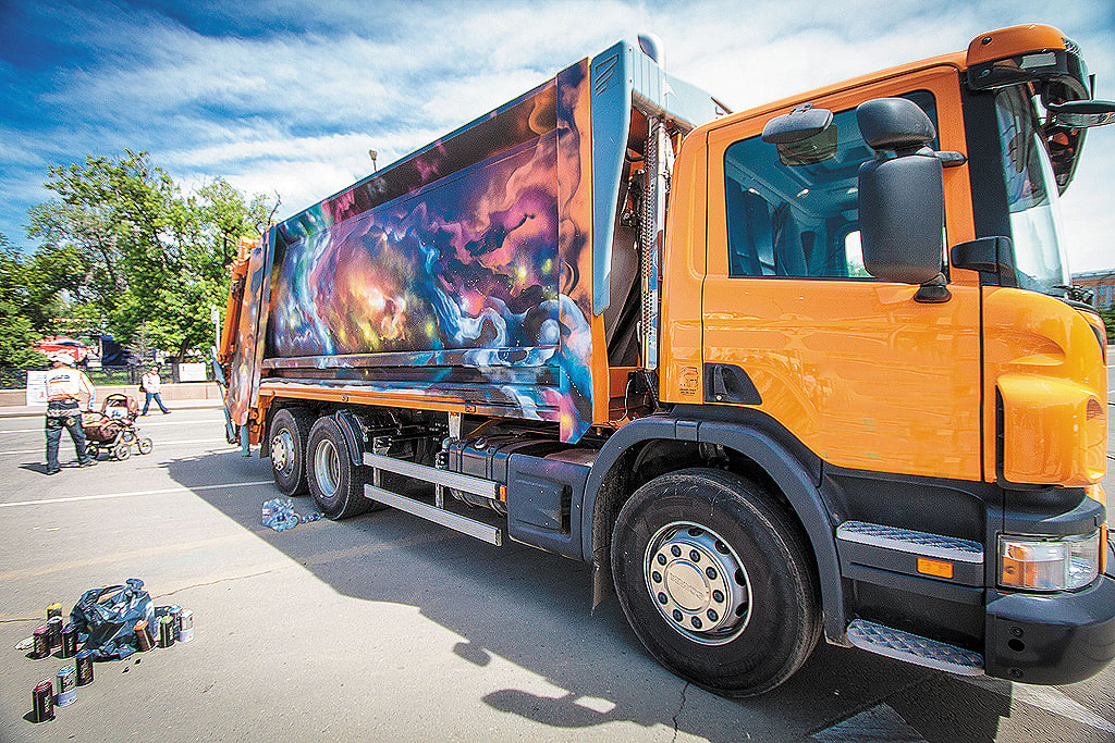 Когда со «Спецавтохозяйством» было всё обговорено, встал вопрос обеспечения художников материалами. Профессиональные райтеры решили раскрасить автомобили бесплатно, для реализации идеи им лишь были необходимы краски. Муниципалитет смог выделить средства на закупку материалов только в этом году. В День молодёжи, 28 июня, две машины для сбора мусора с контейнерных площадок подъехали на сквер имени Кирова. Райтерам предложили раскрасить кузовы машин рисунками. При этом каждый из них был выполнен в разной технике.