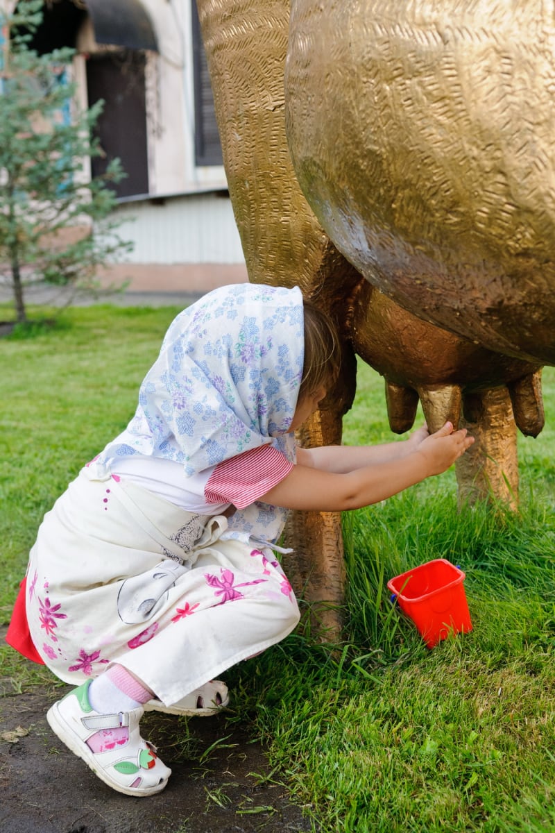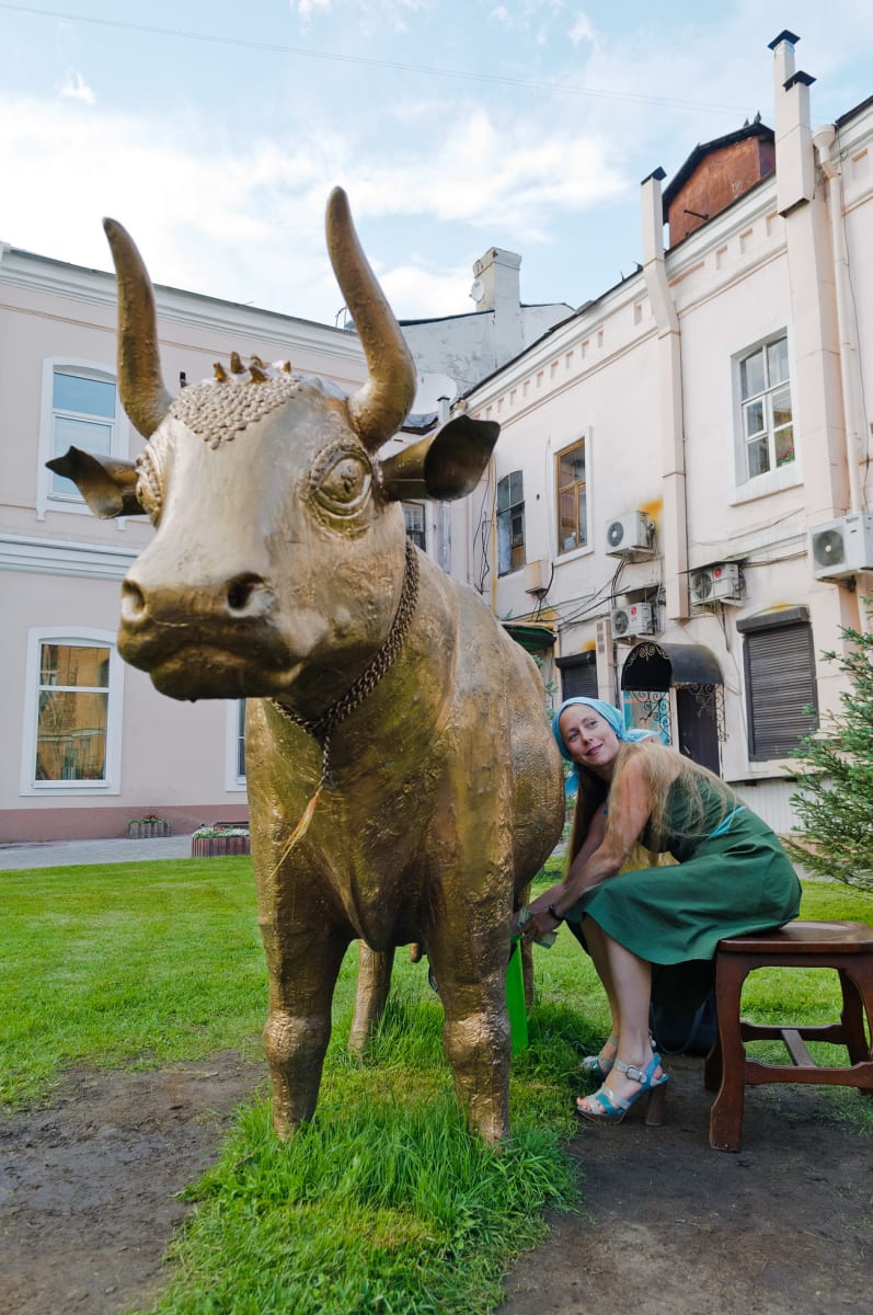 Неделю назад иркутяне, прогуливающиеся в скверике, известном как «сквер с коровой», в изумлении замерли на скамейках, наблюдая странную картину. Сначала сюда начали подтягиваться люди с вёдрами, в основном женщины. Издалека они кивали друг другу, идентифицируя «своих» именно по таре. Ну а затем десятка три женщин разных возрас-тов в платках и передниках по очереди доили золотую корову. Компанию также украсил и мужчина в платочке, который доил корову не хуже остальных. Откуда же было знать непосвящённым, что это был целый ритуал на деньги и материальное благополучие?