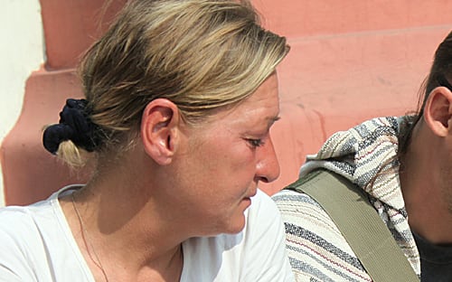 Из всех представителей от беднейших слоёв населения на поверку не все оказались собственно бомжами. Евгения, одна из деятельных участников митинга, сидя на храмовых ступенях со стаканчиком для пожертвований, с негодованием отвергла предположение, что она бездомная: