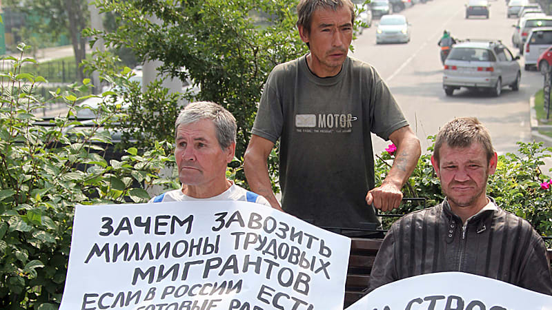 С плакатами, написанными для них активистами НБП, на митинге бездомные чувствовали себя неуютно и неуверенно