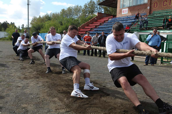 Один из самых зрелищных видов шахтёрской спартакиады – перетягивание каната. Этот вид состязаний был включён в программу несколько лет назад, но как-то пришёлся по вкусу, прижился и стал традиционным. Обычно победителями в этом виде программы становились тулунчане, но нынешняя встреча преподнесла сюрприз. Канатчики из ООО «Трайлинг», участвовавшие, кстати, в спартакиаде впервые, перетянули постоянных чемпионов, к неописуемому удивлению последних, и вызвали этим массу симпатий зрителей. Победа была почти в руках, но как на грех оказалось, что у команд «Тулун-угля» и «Трайлинга» одинаковое количество баллов. По Положению о проведении спартакиады в таком случае полагается тянуть канат заново, что и было сделано. Но здесь спортивное счастье отвернулось от устьилимцев, да и усталость сказалась: они проиграли обе попытки. Таким образом, чемпионами в очередной раз стали тулунчане, усть-илимцы на втором месте, третье досталось спортсменам «Черемховугля». Новички, однако, в обиде не остались. В следующем году, уже обладая первичным опытом, они надеются достичь более весомых результатов.