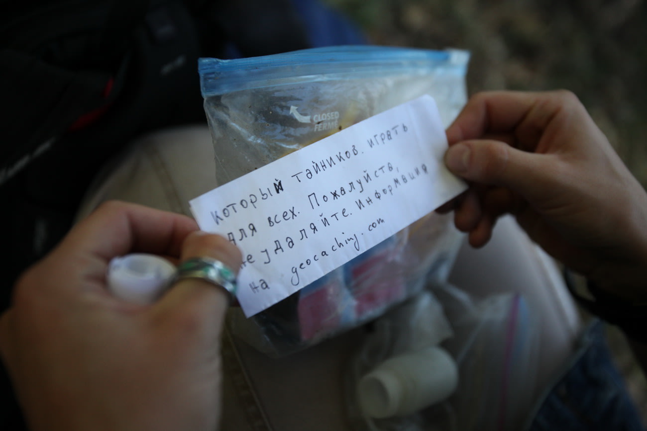 Мой первый тайник с бегемотом из киндер-сюрприза, геомонетками и флагами – единственный в черте Иркутска, входящий в международную сеть (базируется на geocaсhing.com). По всему миру таких закладок несколько сотен тысяч – в городах, в лесу, в горах, под водой. Участники не только ищут сокровища, они же их закладывают и отслеживают сохранность. Хозяин тайника, кстати, полностью распоряжается его судьбой.