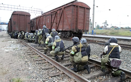 Единственное, чего удалось добиться, – попасть в непосредственную близость к захваченному вагону вместе с одной из групп захвата ОМОНа, занявшей свою позицию на перроне за одним из служебных строений вокзала. По сценарию учений почтово-багажный состав, в середине которого был вцеплен плацкартный вагон, захватила группа террористов группировки «Священный Кавказ» в составе восьми человек (чуть позже начальник Управления ФСБ России по Иркутской области Михаил Козубов признался «Иркутскому репортёру», что группировка была названа произвольно, в рамках игры, и в реальности её не существует). Они ехали среди пассажиров плацкарта, на станции Усолье-Сибирское сотрудники вокзала попытались проверить у них документы и досмотреть багаж, и тогда они заблокировались в вагоне и объявили о захвате заложников.