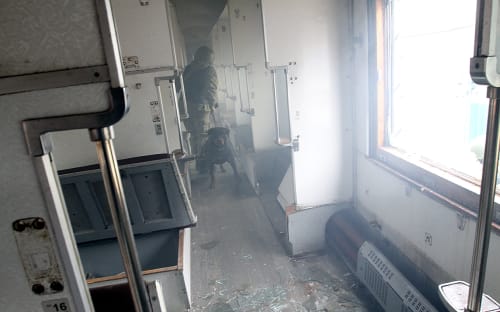 Перрон внезапно пустеет. В вагоне после захвата висит густая пороховая гарь, валяются разбитые осколки стекла и гильзы. В начале вагона работает кинолог с собакой. На приглушённые щелчки фотоаппарата из противоположного тамбура ротвейлер поворачивает массивную голову и с нехорошим вниманием смотрит на корреспондентов «Иркутского репортёра».