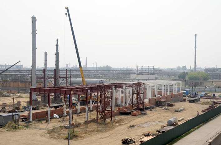 Строится и установка очистки сточных вод (УОСВ) – один из важнейших экологических проектов АНХК. За последние три месяца установлены два приёмных резервуара сточных вод объёмом 400 м3, три колонны (колонна выделения сероводорода высотой 22 метра, колонна получения очищенной сточной воды высотой 30 метров и абсорбер аммиака высотой 15 метров), а также подготовлены фундаменты для целого ряда оборудования, ведётся монтаж металлоконструкций.