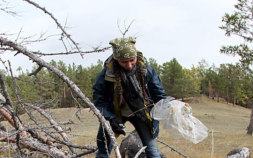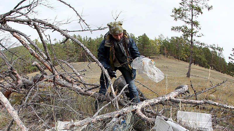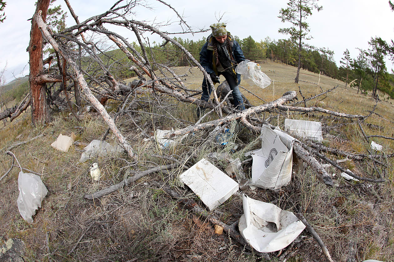 На завтрак и организационные моменты был выделен всего час – в полдень добровольцы приступили к своей главной миссии – уборке мусора. С первого взгляда казалось, что берега «жемчужины Сибири» чисты и волонтёрам не придётся особенно стараться. Но на самом деле туристы, оставляющие мусор, весьма изобретательны. Все отходы они прячут подальше от глаз: в ямы, канавы, кусты. Некоторые закапывают мусор в песок или пытаются замаскировать его травой. Семья Васильевых, например, у спуска к берегу нашла огромное количество стеклянных и пластмассовых бутылок. Какие-то туристы умудрились зарыть их в землю под кустами шиповника. «Мы с мамой и братом Никитой уже очень давно здесь убираемся, я устала, а мама никак не хочет заканчивать – все время находит новый мусор», – печалится шестилетняя Катя Васильева.