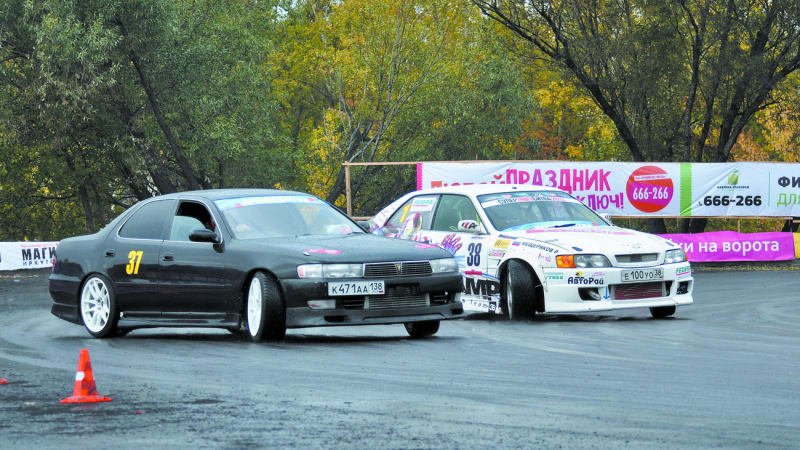 Значительную часть автомобилей из класса Street, заезды в котором проходили 21 сентября, тоже не увидишь гарцующими на улицах Иркутска. Гонщики, выступавшие на них в субботу, состязались в одиночных заездах – для этого не требуется столько опыта, сколько для парных выступлений в классе Pro. В остальном правила те же – каждый гонщик на старте получает 100 очков, из которых вычитают баллы за различные ошибки: сход с траектории, обозначенной судьями, сбитые конусы, недостаточную скорость или малый угол заноса. Теоретически можно набрать больше сотни за зрелищность – агрессивные «перекладки» между поворотами, густой дым из-под колёс. Но на деле такое происходит нечасто: к примеру, занявшие первое и второе места в классе Street Антон Добровольский на автомобиле Toyota Chaser и Станислав Ширяев на Toyota Mark II набрали по 90 баллов. На счету Алексея Шульгина на Nissan Silvia S15, ставшего третьим, – 80 очков.