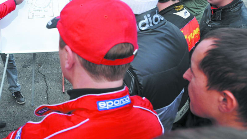 Тройка призёров на следующий день участвовала в квалификации в классе Pro. «Всё логично: если уж три пилота стали лучшими, то они могут ездить уверенно и безопасно», – объясняет организатор соревнований. Действительно, уверенность, опыт и то, что называют чувством машины, – это насущная необходимость, ведь в классе Pro проводятся парные заезды, в которых крайне важны точный расчёт и умение без малейших отклонений удержать болид на заданной траектории. Забегая вперёд, скажем, что Добровольский и Ширяев, участвовавшие в квалификации, успешно её прошли, даже несмотря на то, что погода была «нелётная»: моросящий дождь, на несколько мгновений сменившийся градом, намочил трассу настолько, что многие мощные машины, водители которых пытались сорвать их в занос, в первом же повороте попросту разворачивало.