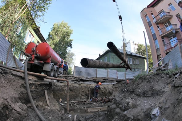 Как только заканчивается отопительный сезон, в областном центре наступает этап устранения последствий крепких сибирских морозов. Корреспондент «ВСП» побывал во дворе дома, который в канун прошлого Нового года остался без централизованного теплоснабжения. Тогда 30 декабря ремонтная бригада до пяти утра прокладывала временную ветку трубопровода. Этим летом во дворе вновь работы – вместо временных сетей кладут высокотехнологичные новые.