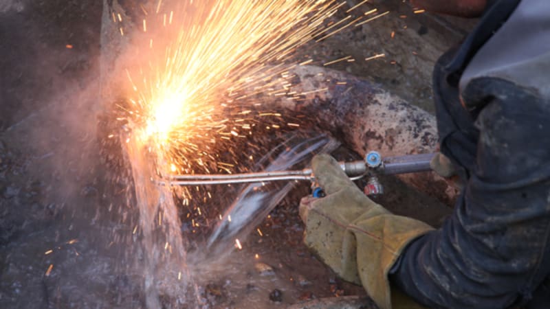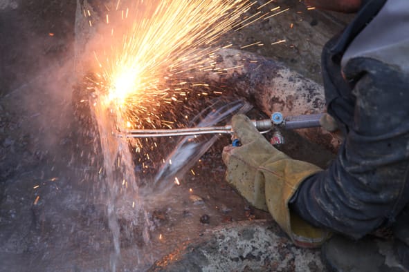 Обе трубы, как временную, так и старую, сварщик разрезает на несколько участков, как раз по швам. «Зимой в три часа ночи паяли долго. Был большой напор воды, что очень осложняло операцию. А теперь вот как лихо режет», – подшучивают над сварщиком Василием Гришиным его коллеги. Участок магистрали небольшой, но из-за изгибов сложный, поэтому сварщику приходится работать не один час. Автомобиль с краном, чтобы не терять время, начинает опускать в шурф отрезки труб, которые уже на месте будут собираться в одно целое.