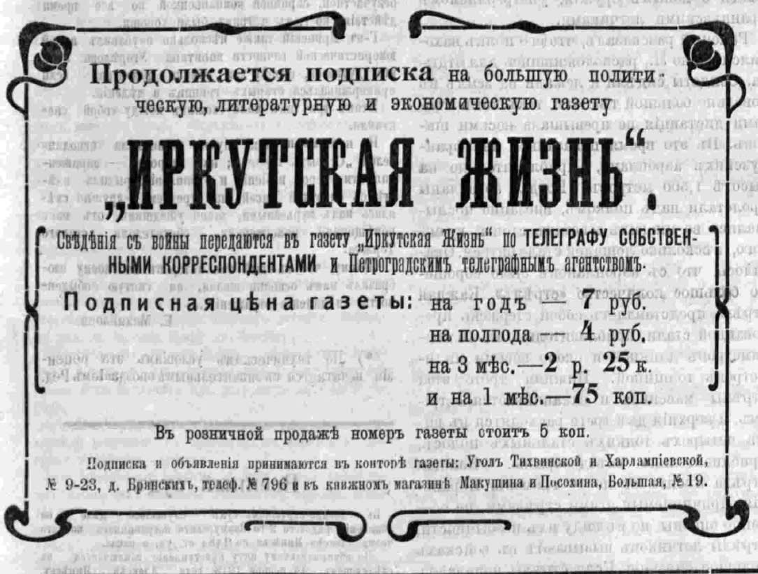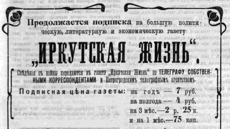 Автор благодарит за предоставленный материал сотрудников отдела библиографии и краеведения Иркутской областной библиотеки имени И.И. Молчанова-Сибирского