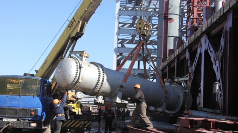 При установке реакторов точность отслеживать приходится по геодезическим приборам, ведь погрешность здесь не должна превышать одного миллиметра. Для проведения сложного монтажа потребовался гусеничный кран грузоподъёмностью более 500 тонн. Мощность установки по гидроочистке дизельного топлива составит 4 млн. тонн.