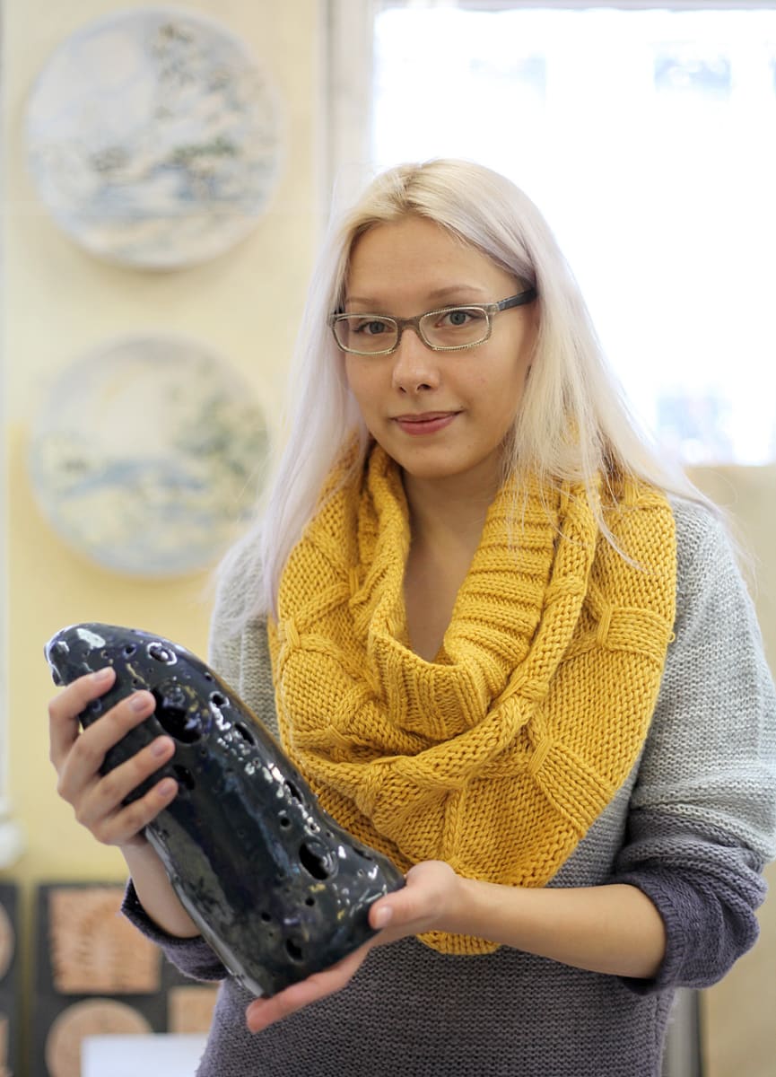 «Мне очень нравится мозаика, но это не моя специальность, – Елена рассказывает ещё об одной необходимости выбора. – Конечно, у нас были, какие-то краткие вводные курсы, но я специализируюсь на керамике, поэтому в итоге склонилась к ней, тем более что керамика – это прочность».