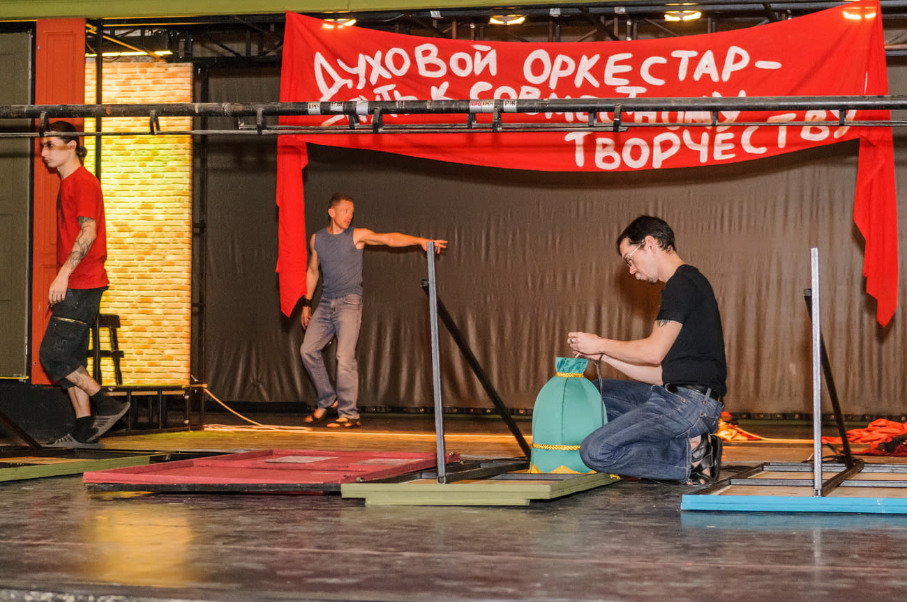 – Нет, никаких конфликтов. Когда идут самые кровавые репетиции, когда всё сращивается, обычно возникают скандалы, у нас этого нет. Кто-то может поворчать, но в целом всё позитивно, с любовью и нежностью. Возникали вопросы, предложения со стороны актёров, уточнения, но это нормальный творческий процесс. Но чтобы кто-то вставал в позу и говорил: «Я так делать не буду!» – такого не было. Смысл спорить? У режиссёра есть определённая концепция, он знает, чего он хочет, знает, как это сделать. Я нахожусь на сцене постоянно. У нас три балетмейстера: главный – Людмила Цветкова, постановщик степа – Игорь Халеев, а вся пластика – моя. Я всё время на сцене, показываю, объясняю, идёт взаимообразный процесс, мы постоянно в связке работаем.