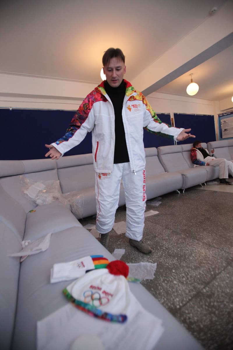 – Нам нужно было раздать флажки для приветствия факелоносцев собравшимся людям. Народ собирался постепенно, люди в основном не знали, как себя вести, спрашивали, что можно, чего нельзя делать. Главным для нас было сохранить факелоносца и факел. Понимаю, странно звучит, но во время эстафеты в других городах случалось всякое: факелоносец уходил в толпу, стоящие люди забирали и уносили факел. Абсурд, но возможно всё. Как такового сценария возможного развития форс-мажора не разбиралось. Мы должны быть максимально дружелюбны и расположены к людям, чтобы не спровоцировать конфликтную ситуацию. Не должны отходить от факелоносца, оставлять его одного и препятствовать людям фотографироваться. Нам нужно было выделяться из толпы, чтобы автобус не проехал мимо, находиться рядом с факелоносцем всё время на случай, если ему что-нибудь понадобится или возникнет проблема.