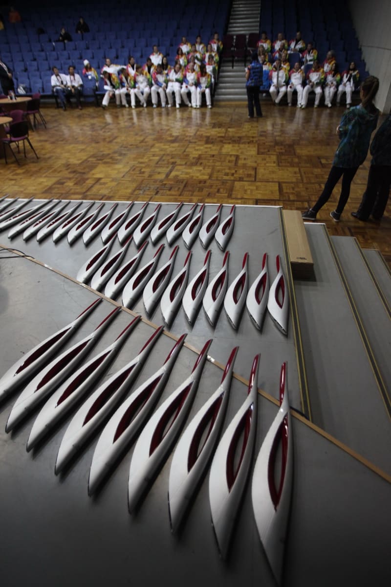 Глубокий внутренний смысл расцветки был понятен не всем – некоторые несознательные граждане сразу определили декор белого костюма с «радужным переливом» по плечам и рукавам как «винегрет на снегу». Среди множества риторических вопросов, направленных на вызов гордости у факелоносца, два были чисто практическими, с лаконичным суховатым ответом: на вопросы «Будут ли кормить на сборном пункте?» и «Входит ли в комплект формы обувь?» организаторы сказали своё решительное «нет».