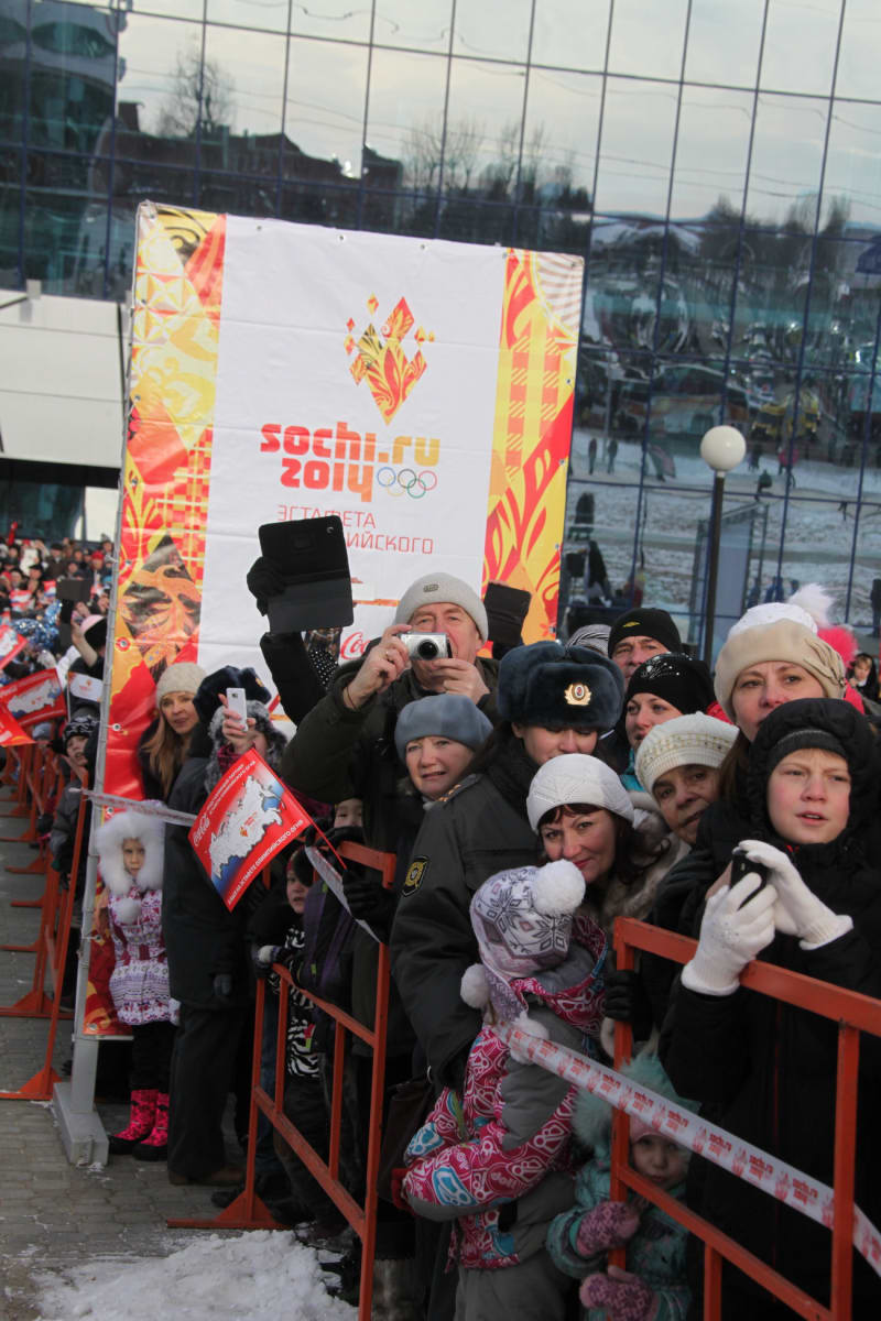 Глас неизбежной общественной оппозиции вещал, что людей выгнали глазеть на мероприятие принудительно. Действительно, как стало известно из множества источников, служащим бюджетной сферы обещали за это дневной отгул. Однако можно выгнать кнутом и пряником людей на мероприятие, но нельзя их заставить радоваться. Люди искренне веселились, снимали происходящее на фото– и видеотехнику: доказывая возросшее благосостояние населения, над толпой реяли многочисленные планшеты и прочие «айпэды» в режиме видео-съёмки. На ключевых точках люди стояли семьями, с детьми, выстраиваясь в очередь на фото с факелоносцем. На этот случай была строгая инструкция – факел из рук не выпускать! И улыбаться…
