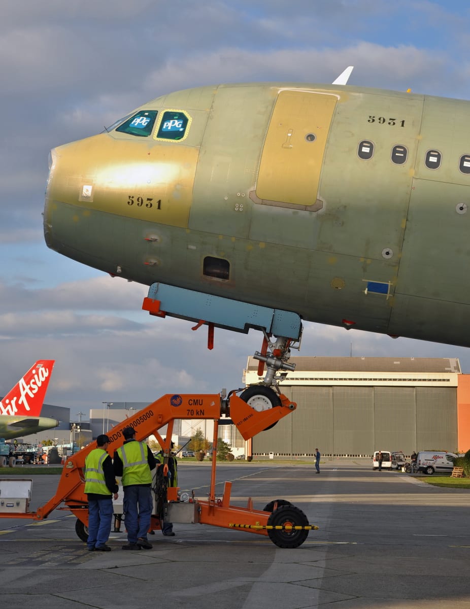 На них приходится львиная доля тех самолётов, что ежемесячно производятся на заводах компании. Причём А320 собирают не только под Тулузой и Гамбургом, но и в Тяньцзине, откуда они поставляются в основном на китайский рынок. Мы же едем в тот цех, что расположен на французской земле. Именно едем – производственная площадка в Бланьяке гораздо больше, чем, скажем, построенный в тридцатые и размещённый относительно компактно Иркутский авиационный завод: цеха разбросаны по территории размером с микрорайон мегаполиса или небольшой городок. Микроавтобус останавливается возле корпуса, возведённого ещё в пятидесятые. Раньше здесь делали «Каравеллы» (Sud Aviation Caravelle, второй по счёту реактивный пассажирский самолёт в мире) и «Конкорды» – сверхзвуковые авиалайнеры Aerospatiale – BAC Concorde, первый из которых оторвался от ВПП на два месяца позже Ту-144, но начал коммерческие перелёты годом раньше советского собрата-конкурента.