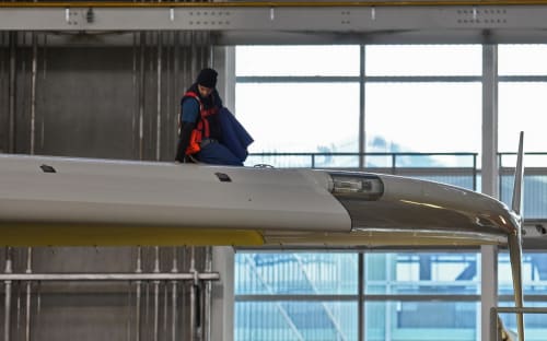 Охрана труда по-европейски: те, кто работает на крыле крупнейшего в мире серийного пассажирского самолёта, пользуются страховкой, как у промышленных альпинистов