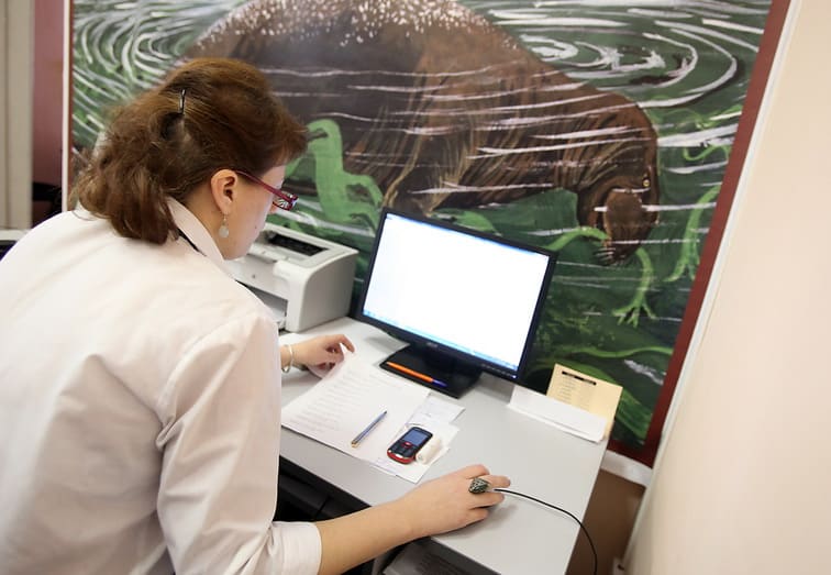Мы идём между шкафами в фондах отдела природы. На высоких шкафах надписи: «Мамонт», «Шерстистый носорог». Там, внутри, хранятся кости палеолитических животных. Сразу вспоминается красноярский краеведческий музей с огромным скелетом мамонта и воссозданным в полный рост шерстистым носорогом. К сожалению, площади отдела природы ИОКМ пока позволяют выставлять лишь отдельные кости. Да и в палеолитической коллекции пока полных скелетов нет. «Есть череп, лопаточная кость, зубы мамонта, – перечисляет Александр Никулин. – Есть черепа шерстистого носорога, большерогого оленя. Когда мы проводим экскурсии, мы всегда даём детям пищу для ума. Например, мамонт был около 7 метров в высоту. Мой рост 160 см, а это означает, что мамонт был больше меня по крайней мере в четыре раза. Приходится объяснять вот так. Хорошо, что дети – народ впечатлительный, и они ярко себе представляют размеры мамонта. Но было бы намного интереснее, если бы у них появилась возможность сравнить скелет мамонта с представителями современной фауны, крупными млекопитающими. Во сколько раз мамонт, к примеру, больше бурого или белого медведя».